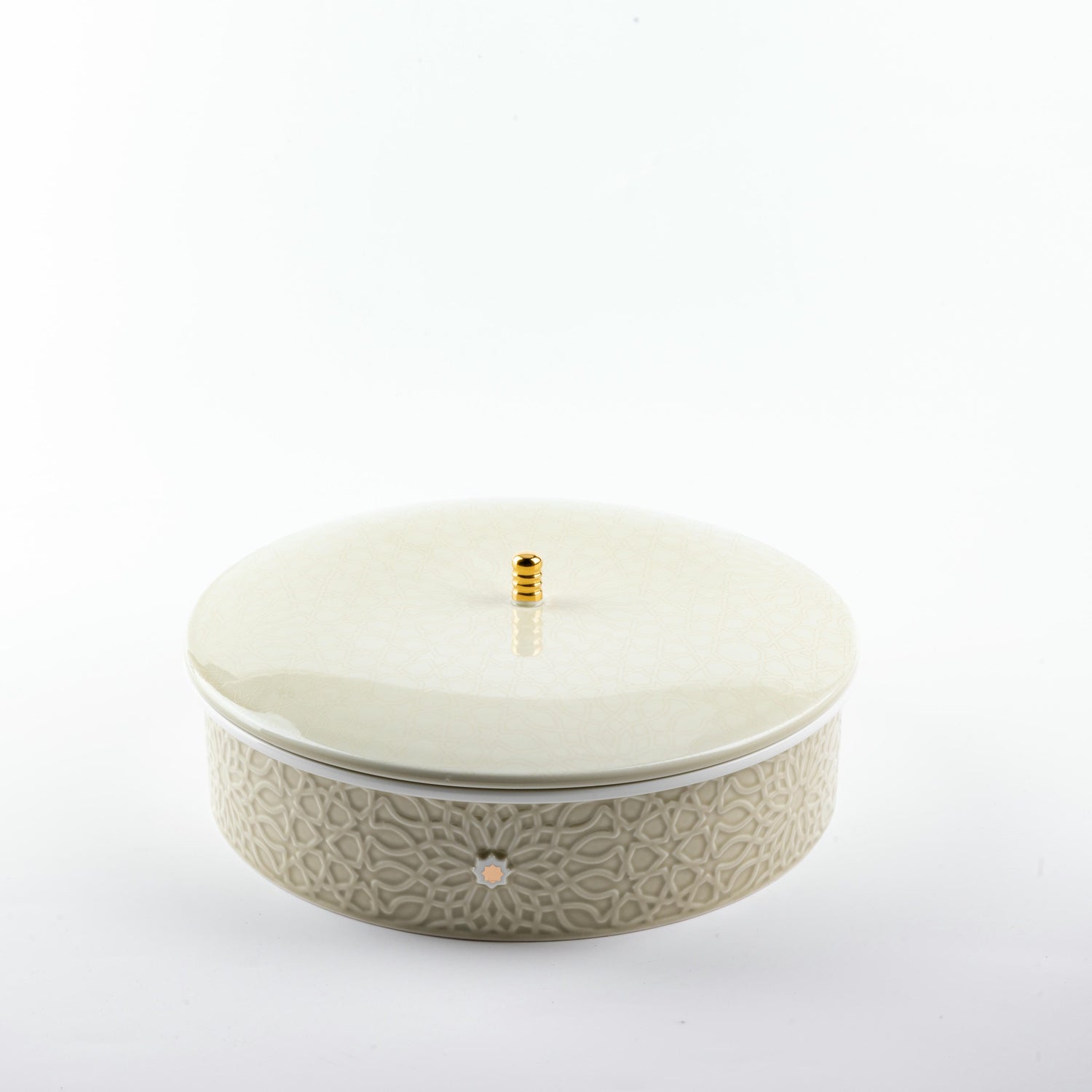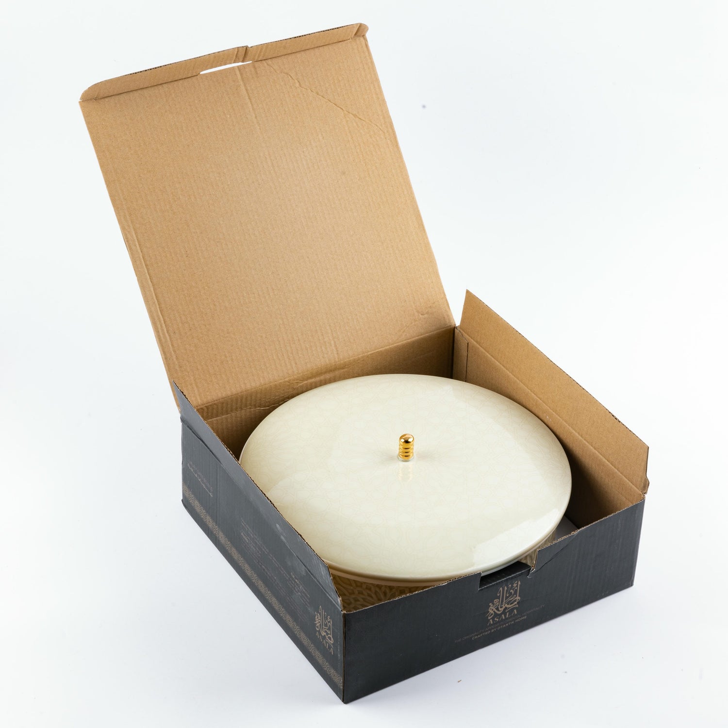 The Asala Large Decorative Canister is a stunning centerpiece that combines timeless tradition with refined sophistication. Crafted from premium porcelain, it serves as the perfect vessel for displaying dates or other treats, enhancing your dining experience with every use. Whether for special occasions or everyday moments, this exquisite piece adds an air of elegance, transforming any setting into one of luxury and grace.