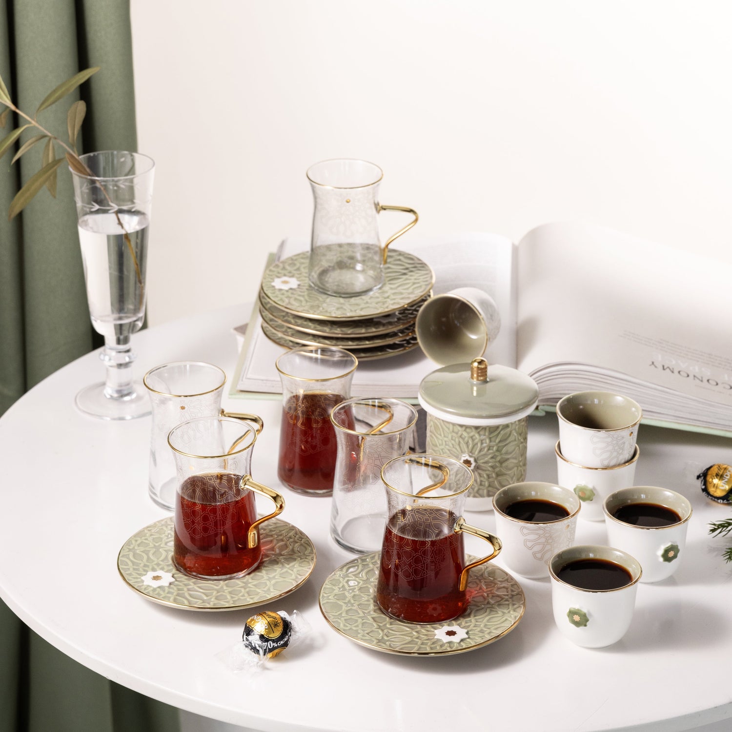 Asala - Tea Set (19-Pc) - Olive Green & Gold