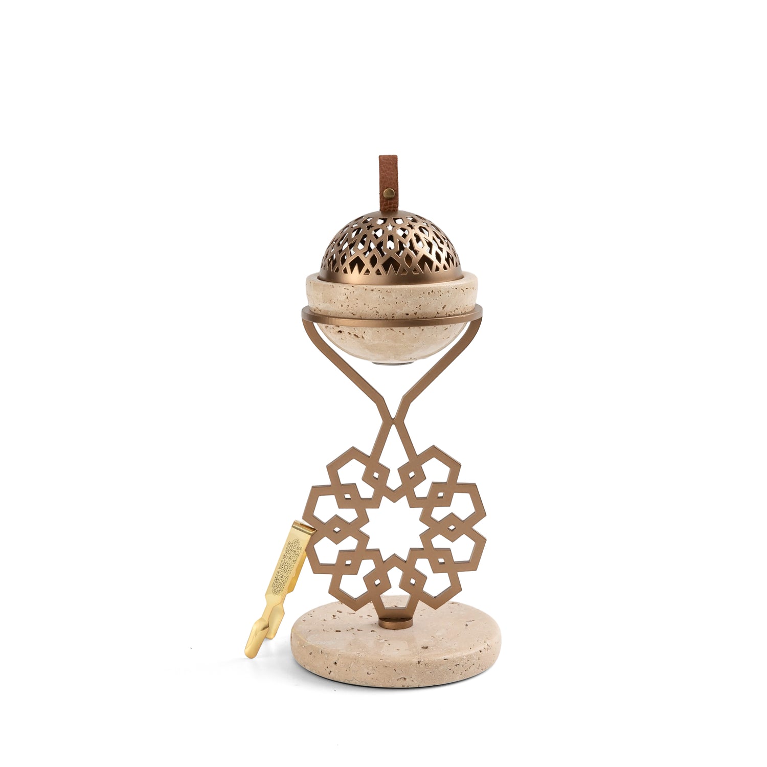 Athar - Marble Incense Burner (2-Pc) - Warm Sand & Bronze