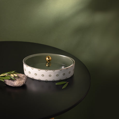 Atheer - Large Decorative Canister - Olive Green & Gold