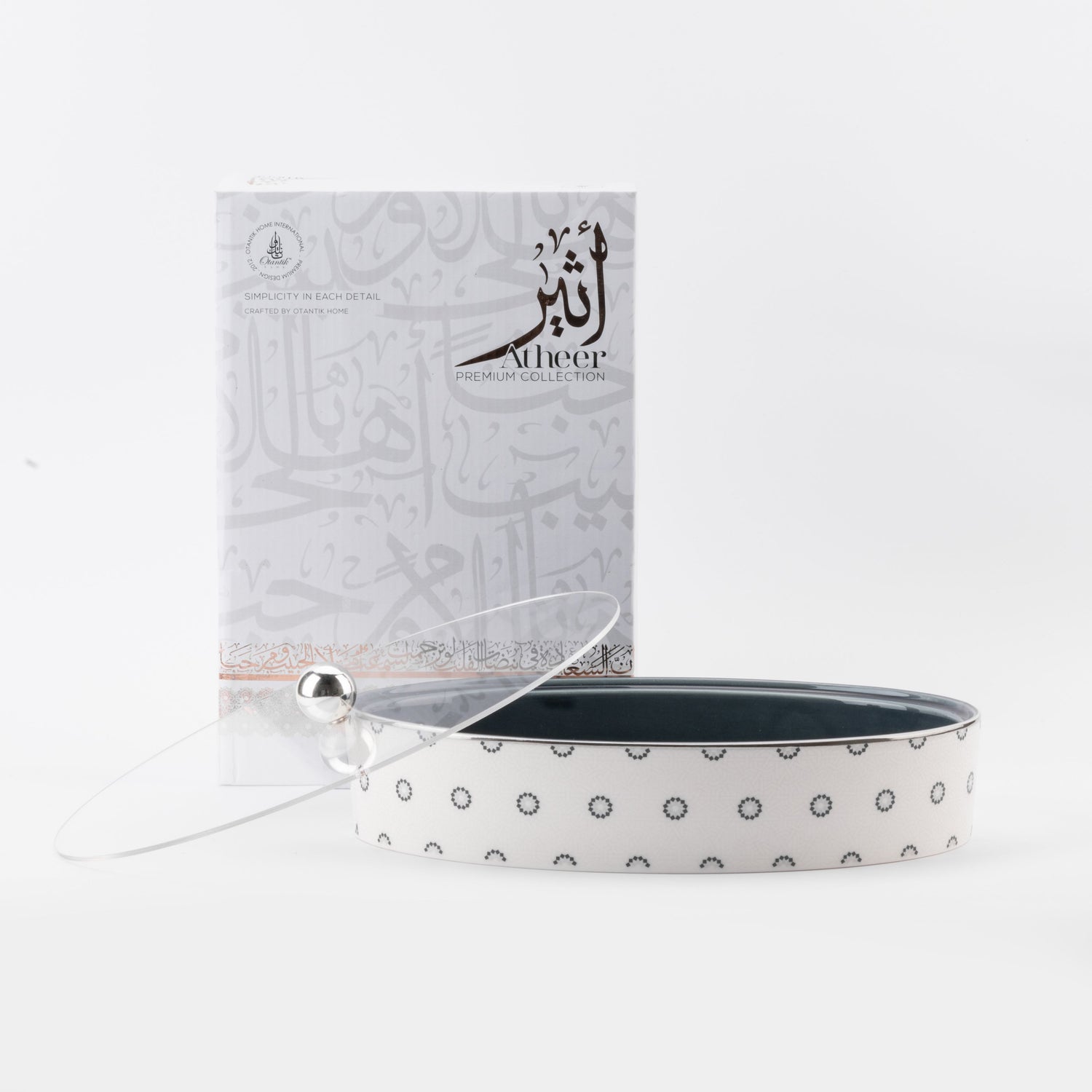 The Atheer Large Decorative Canister is a symbol of elegance and tradition, crafted from premium porcelain to elevate any dining experience. With its spacious design, it?s perfect for beautifully displaying and serving generous portions of dates or other delicacies, adding a refined touch to gatherings or everyday indulgence.