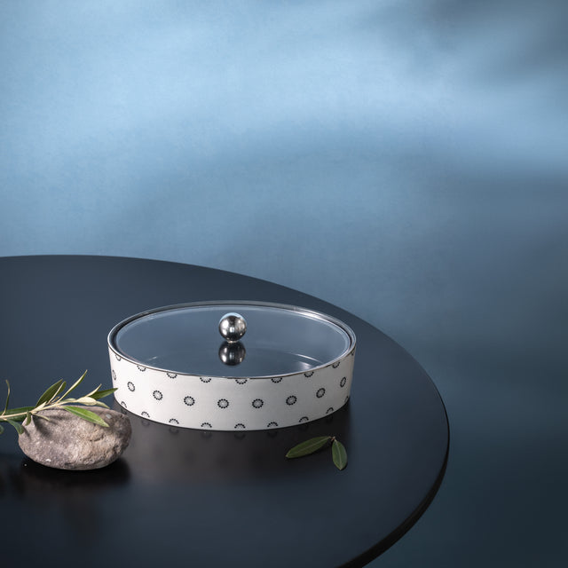 The Atheer Decorative Canister is a stunning blend of tradition and sophistication, crafted from premium porcelain to enhance any dining experience. Perfect for serving and displaying dates, this exquisite piece elevates both special occasions and everyday moments, bringing a refined charm to every setting.