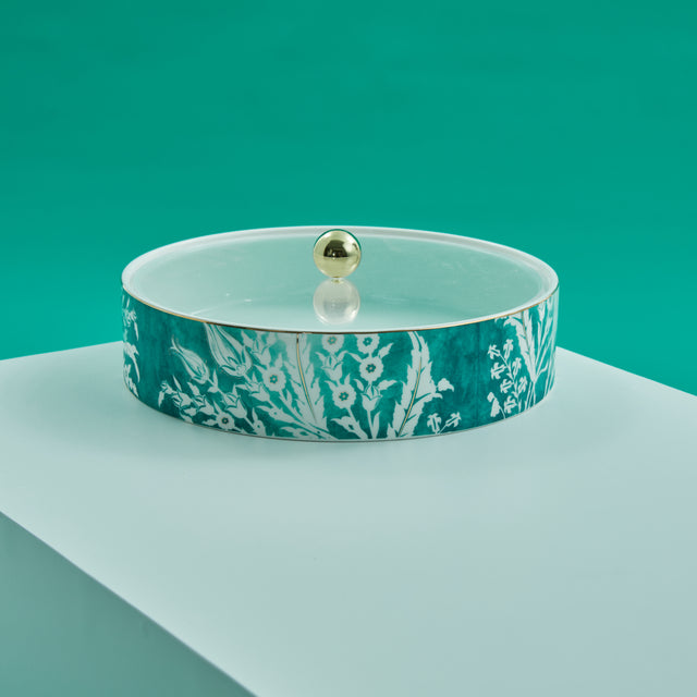 This green and gold Tolipa canister adds an elegant touch to any space. The small size makes it perfect for storing small items while the decorative design adds a luxurious feel. Made with high-quality materials, it is both functional and stylish. Get organized and elevate your decor with Tolipa.