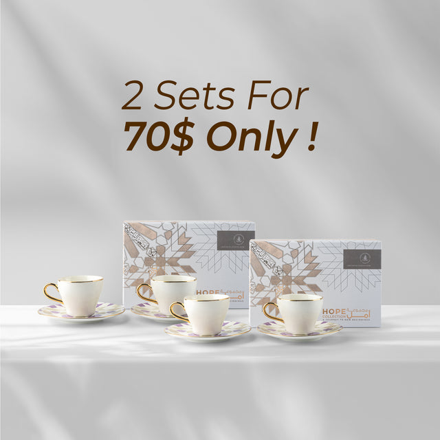The Amal Bundle brings together two exquisite Turkish coffee sets that radiate timeless elegance and elevate every coffee ritual into a shared moment of warmth and style.