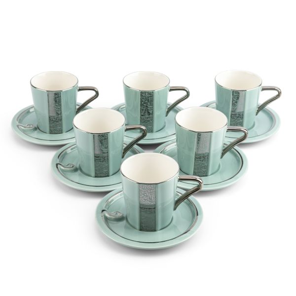 Luxury Noor - Juego de café capuchino (12 piezas) - Azul y plateado