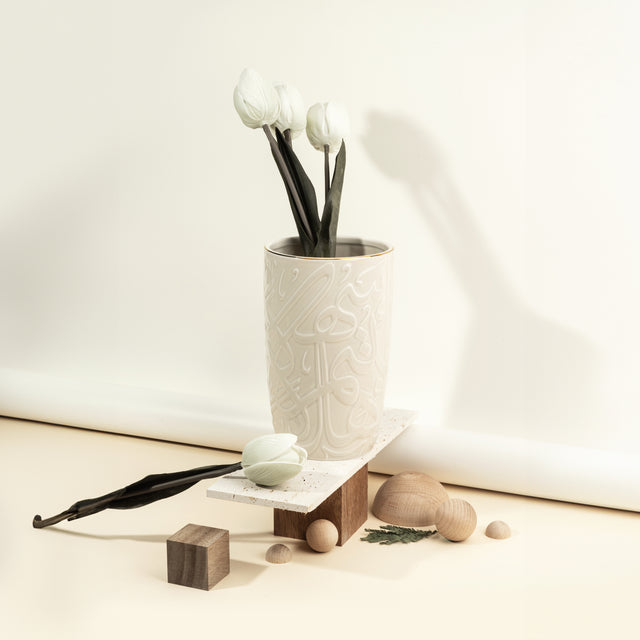 Diwan de lujo - Jarrón decorativo mediano - Beige y dorado