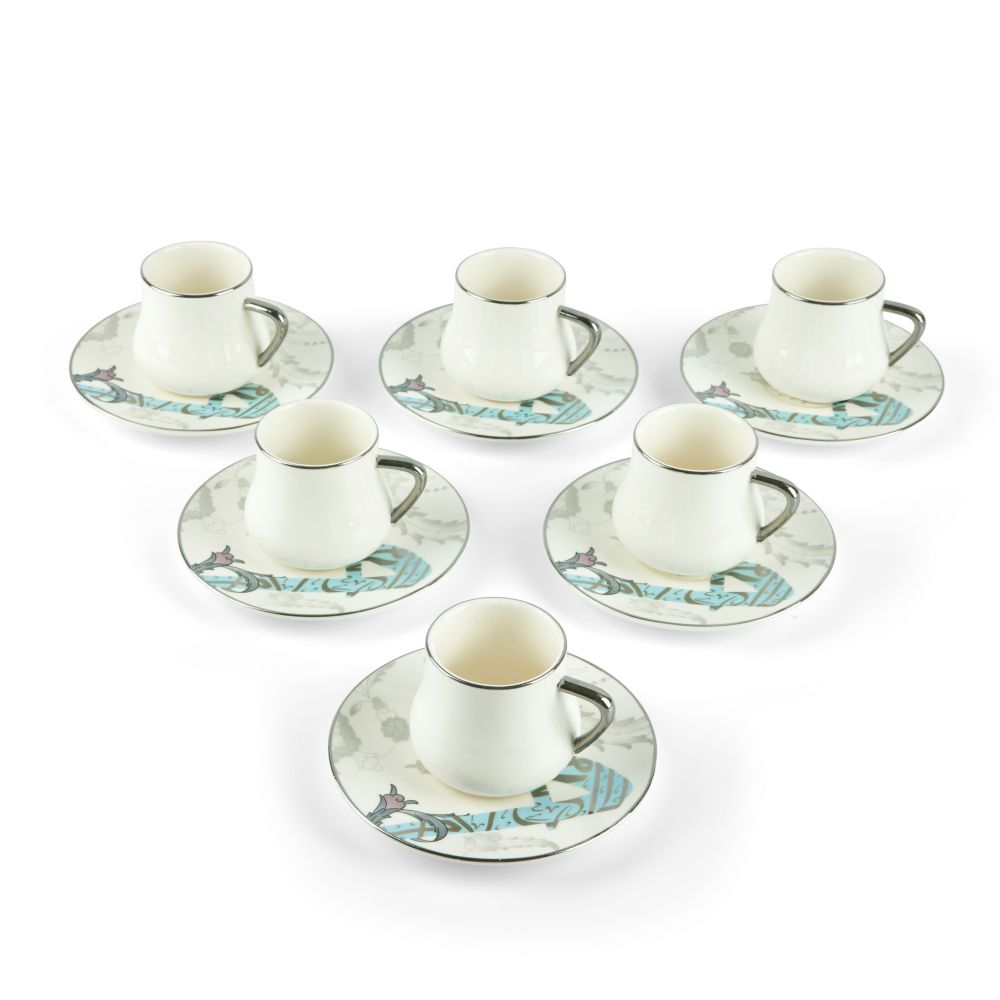Dunes - Juego de café turco (12 piezas) - Blanco y plateado