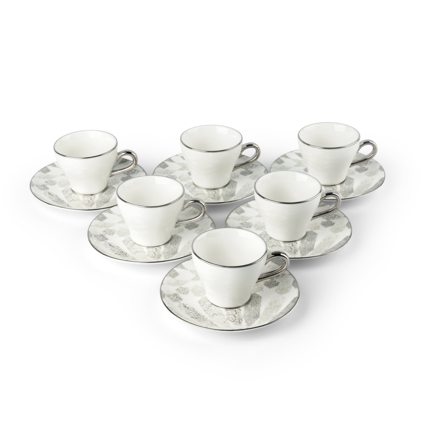 Amal - Tazas de café expreso/turco, (12 piezas) - Gris y plateado
