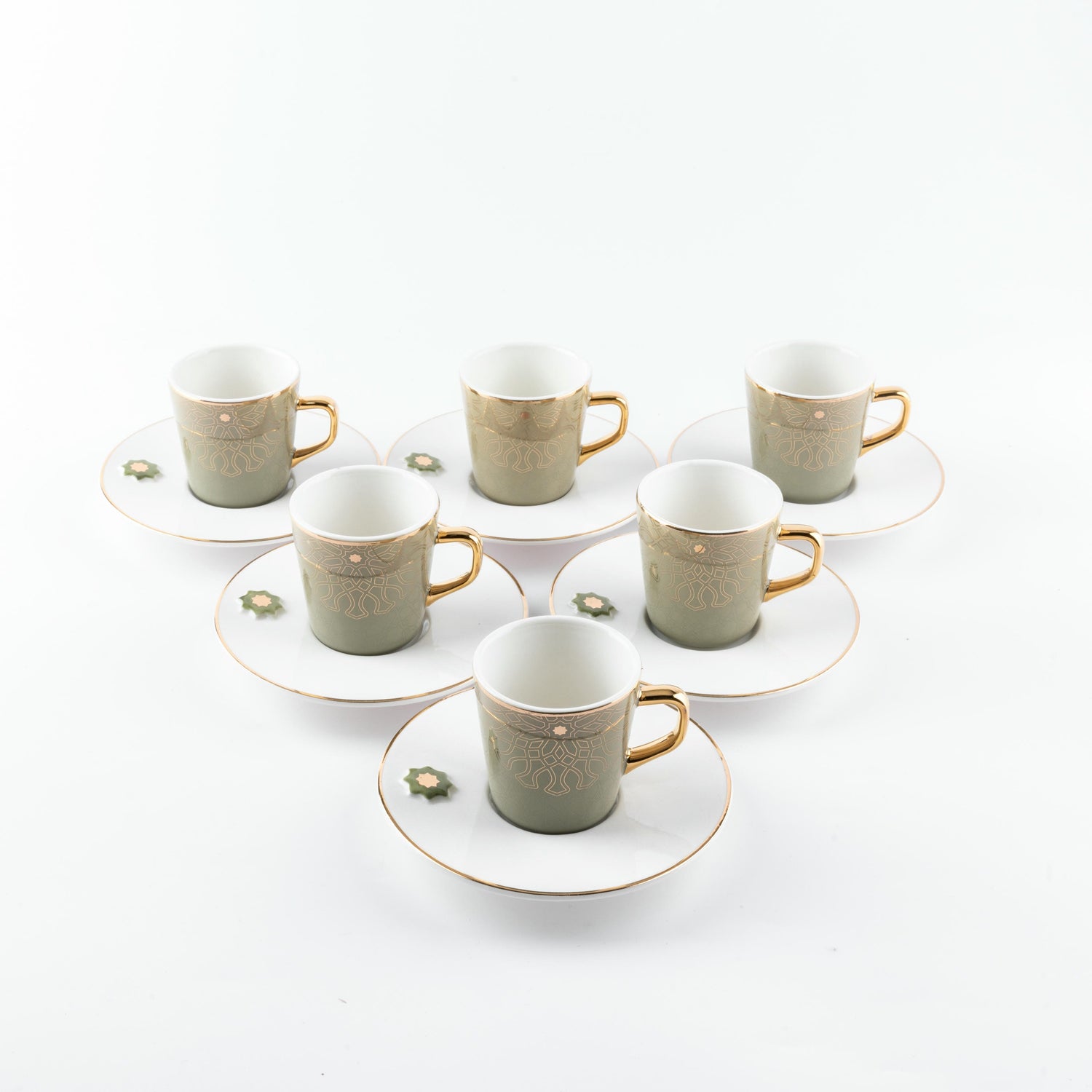 Asala - Esspresso/Turkish Coffee Set (12-Pc) - Olive Green & Gold