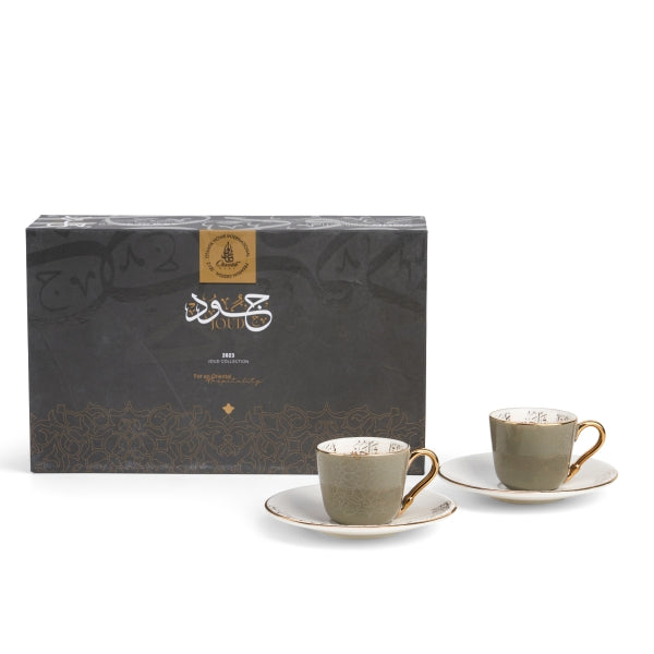 Las elegantes tazas de café espresso/turco Joud ofrecen la combinación perfecta de lujo y estilo, infundiendo opulencia en sus momentos diarios de café. Disfrute del placer de una elegante experiencia de café con estas cautivadoras tazas, que hacen de cada sorbo una encarnación de la elegancia. Eleva tu ritual del café y crea momentos duraderos de refinamiento.