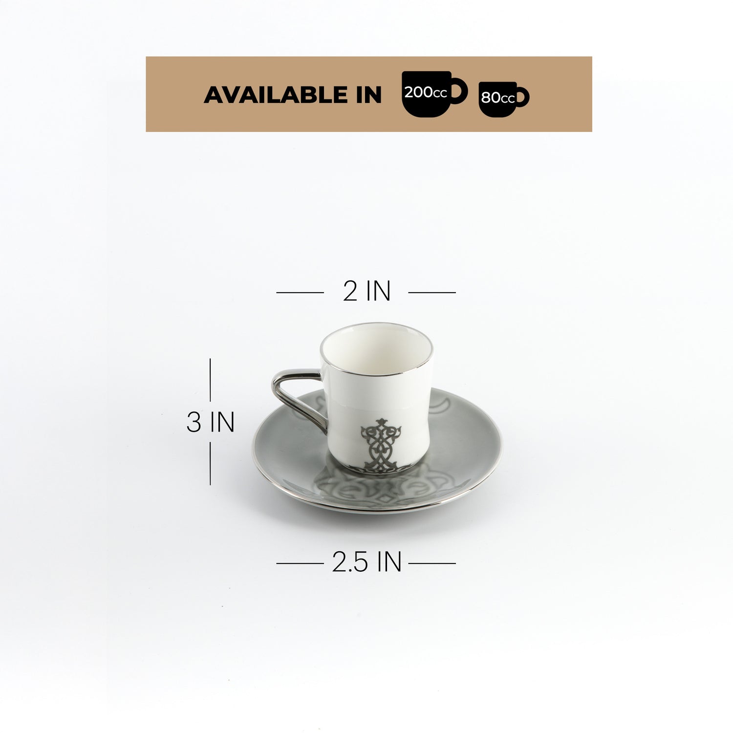 Naqsh - Espresso/Turkish Coffee Set (12-Pc)-Grey & Silver