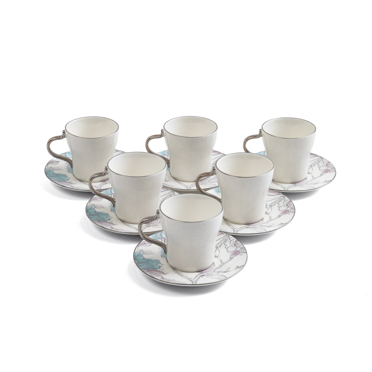 Khuzama - Cappuccino Set (12-Pc) - Blue & Silver