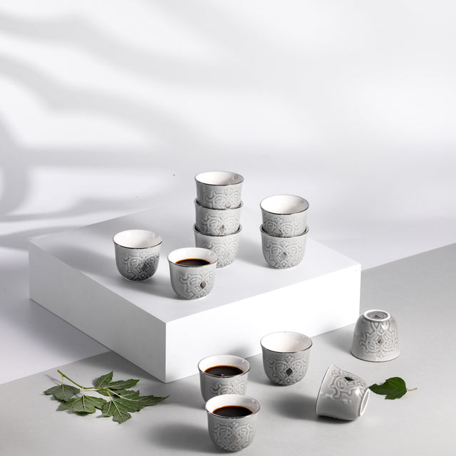 Naqsh - Arabic Coffee Cups (12-Pc)- Grey & Silver