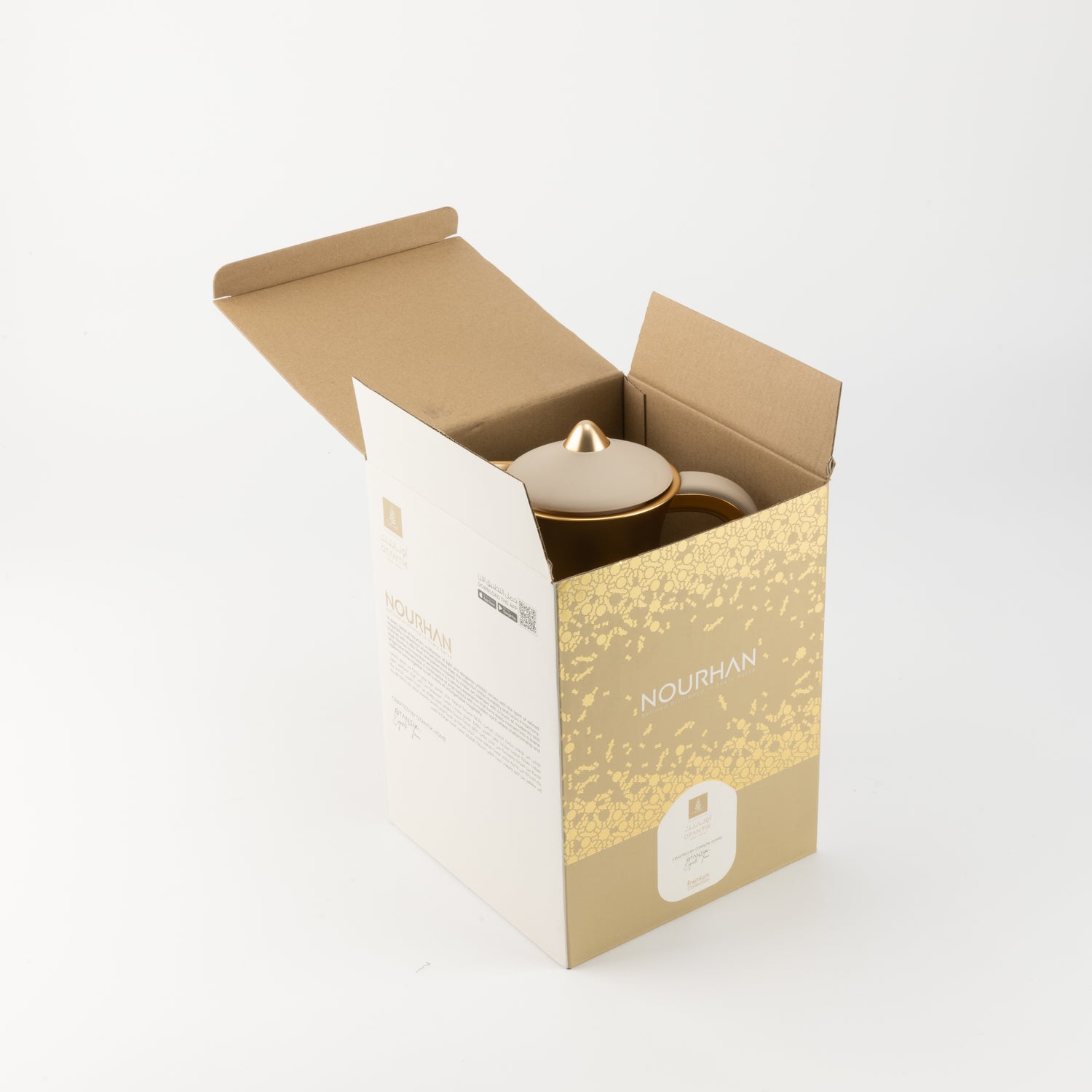 The Nourhan Vacuum Flask combines architectural design with long-lasting performance. Crafted entirely from premium stainless steel, its sculptural form and integrated handle create a modern silhouette designed for elevated serving.
