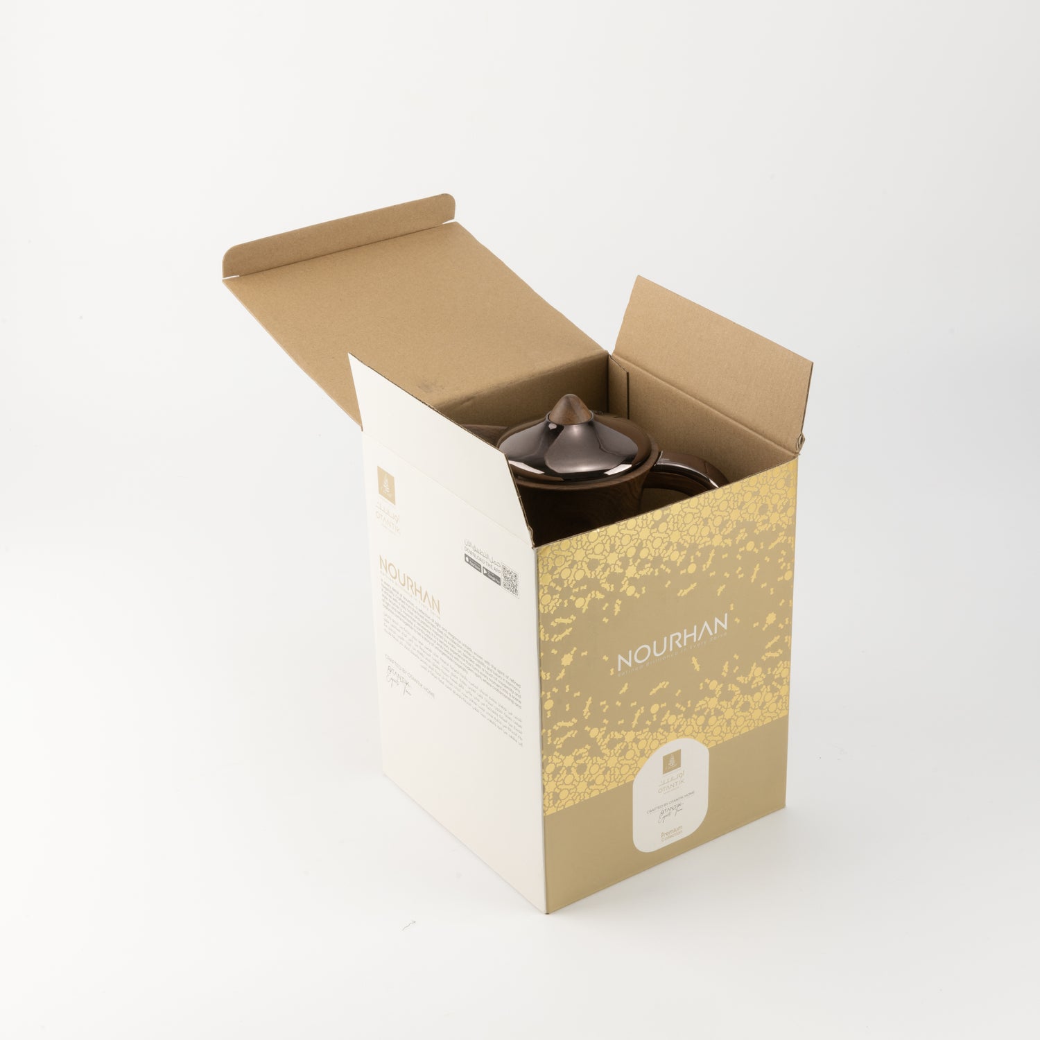 The Nourhan Vacuum Flask combines architectural design with long-lasting performance. Crafted entirely from premium stainless steel, its sculptural form and integrated handle create a modern silhouette designed for elevated serving.