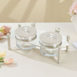 Featuring two premium glass bowls resting on a gold-plated stainless steel base with intricate Arabic engravings, it reflects the beauty of authentic heritage in every detail. The sleek black stainless steel lids, accented with gold-tone handles, provide both protection and style, keeping your selections fresh and elegantly presented.