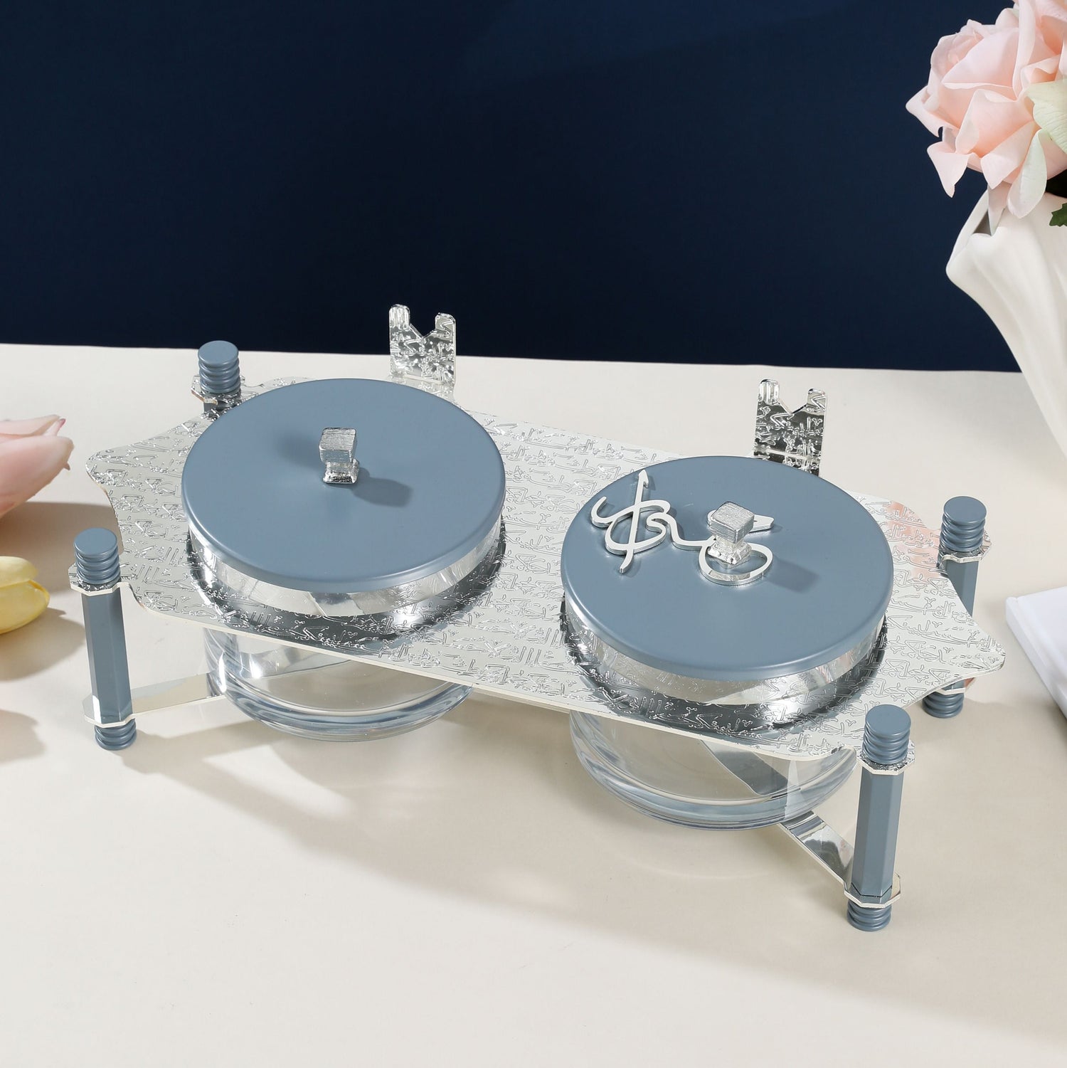 Jiwar - Dual Elegant Nut Serving Set with Engraved - Haze Blue & Silver