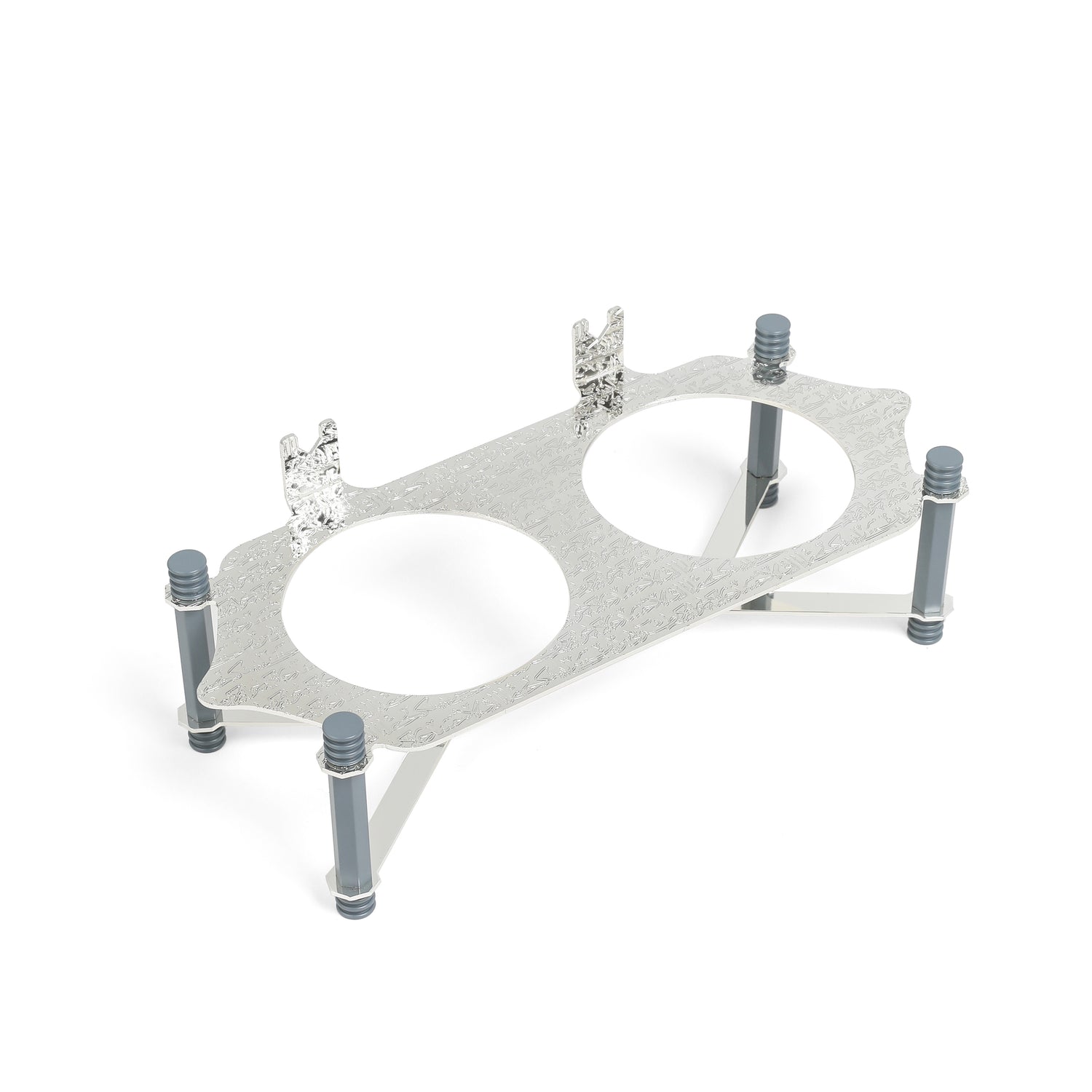 Featuring two premium glass bowls resting on a gold-plated stainless steel base with intricate Arabic engravings, it reflects the beauty of authentic heritage in every detail. The sleek black stainless steel lids, accented with gold-tone handles, provide both protection and style, keeping your selections fresh and elegantly presented.