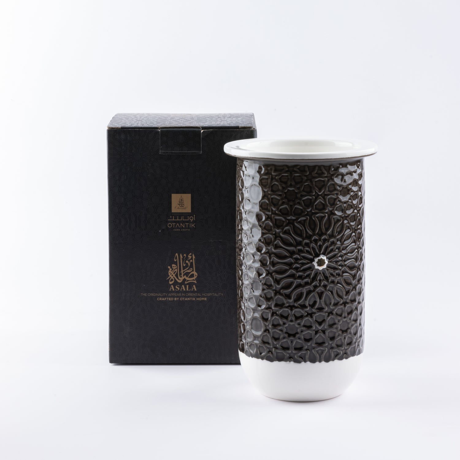 The Asala Medium Decorative Vase combines timeless elegance with contemporary design. Crafted with a striking black and gold color palette, this piece serves as a sophisticated focal point for any room. Its medium proportions make it versatile enough to display on shelves, tables, or mantels without overwhelming your space. The refined finish and balanced proportions reflect expert craftsmanship, making it an ideal choice for those who appreciate curated home décor that elevates interior aesthetics with understated luxury.