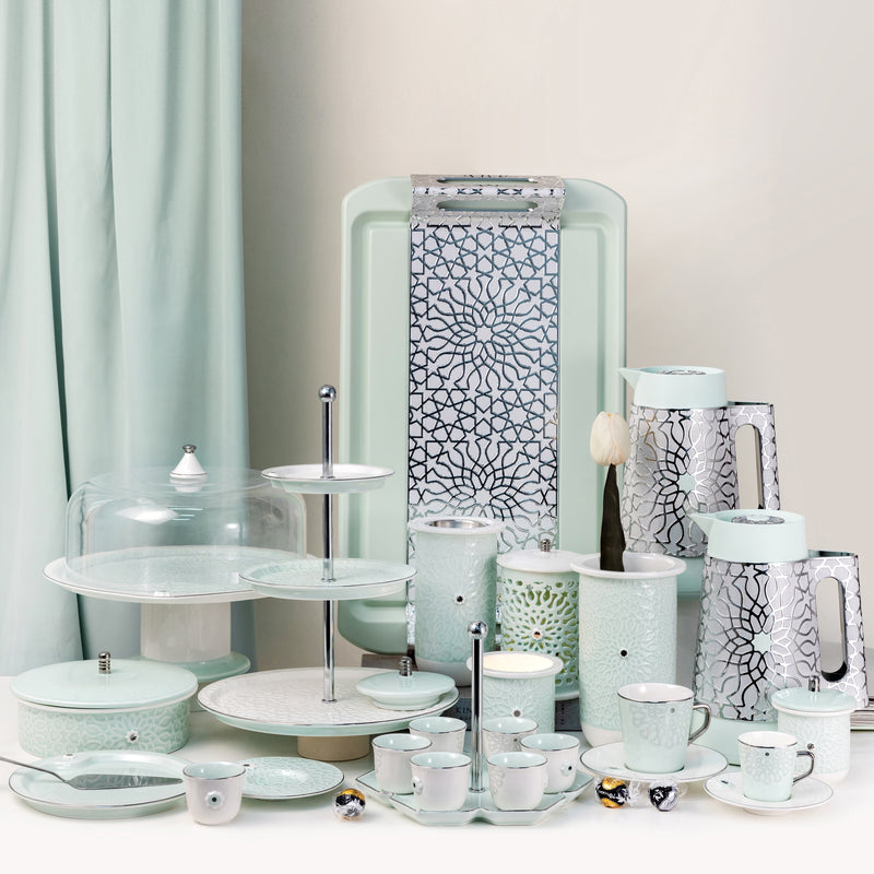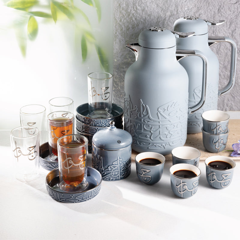 Jiwar - Medium Engraved Date & Dessert Centerpiece - Haze Blue & Silver