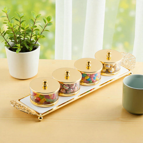 Limited Edition - Snack Serving set (4 Bowls)- White & Gold