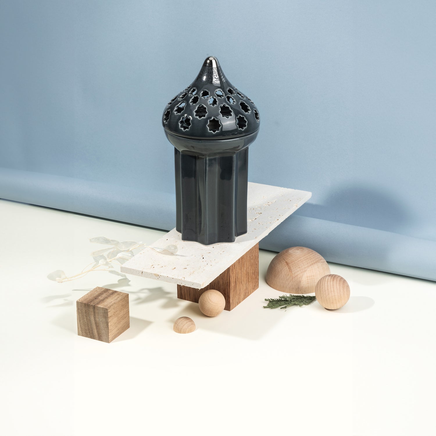 Diwan - Quemador de incienso - Azul oscuro y plateado
