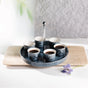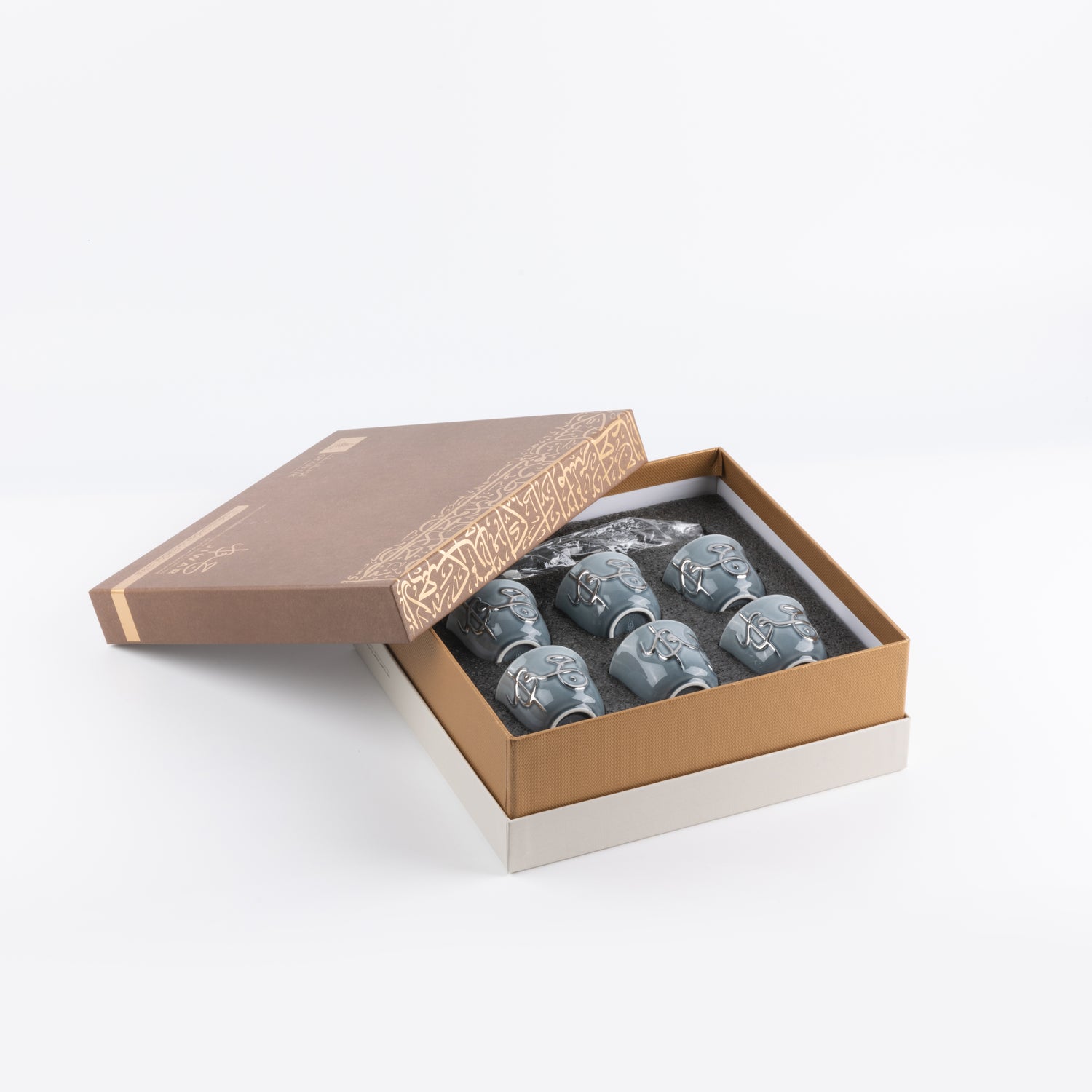 Jiwar - Arabic Coffee Cups With Holder - Haze Blue & Silver