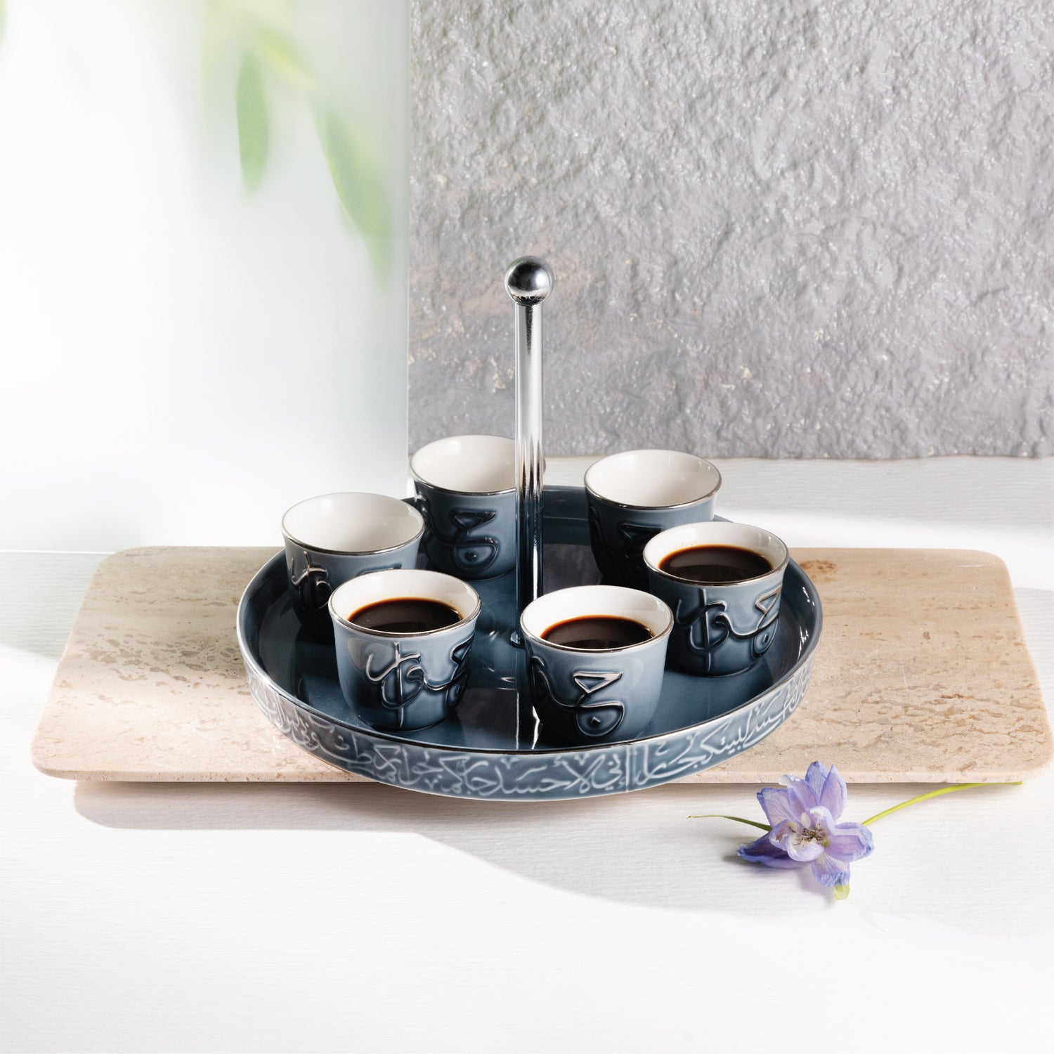 Experience the rich tradition of Arabic coffee with the Jiwar Arabic Coffee Cups with Holder. This exquisite set is designed to elevate your coffee rituals with a blend of elegance and cultural craftsmanship. The beautifully crafted cups, paired with a stylish holder, offer a refined way to serve and enjoy Arabic coffee, adding a touch of luxury to your home or gathering. Whether you’re hosting guests or savoring a moment of reflection, this set brings a timeless charm to every sip, turning your coffee experience into something truly special.