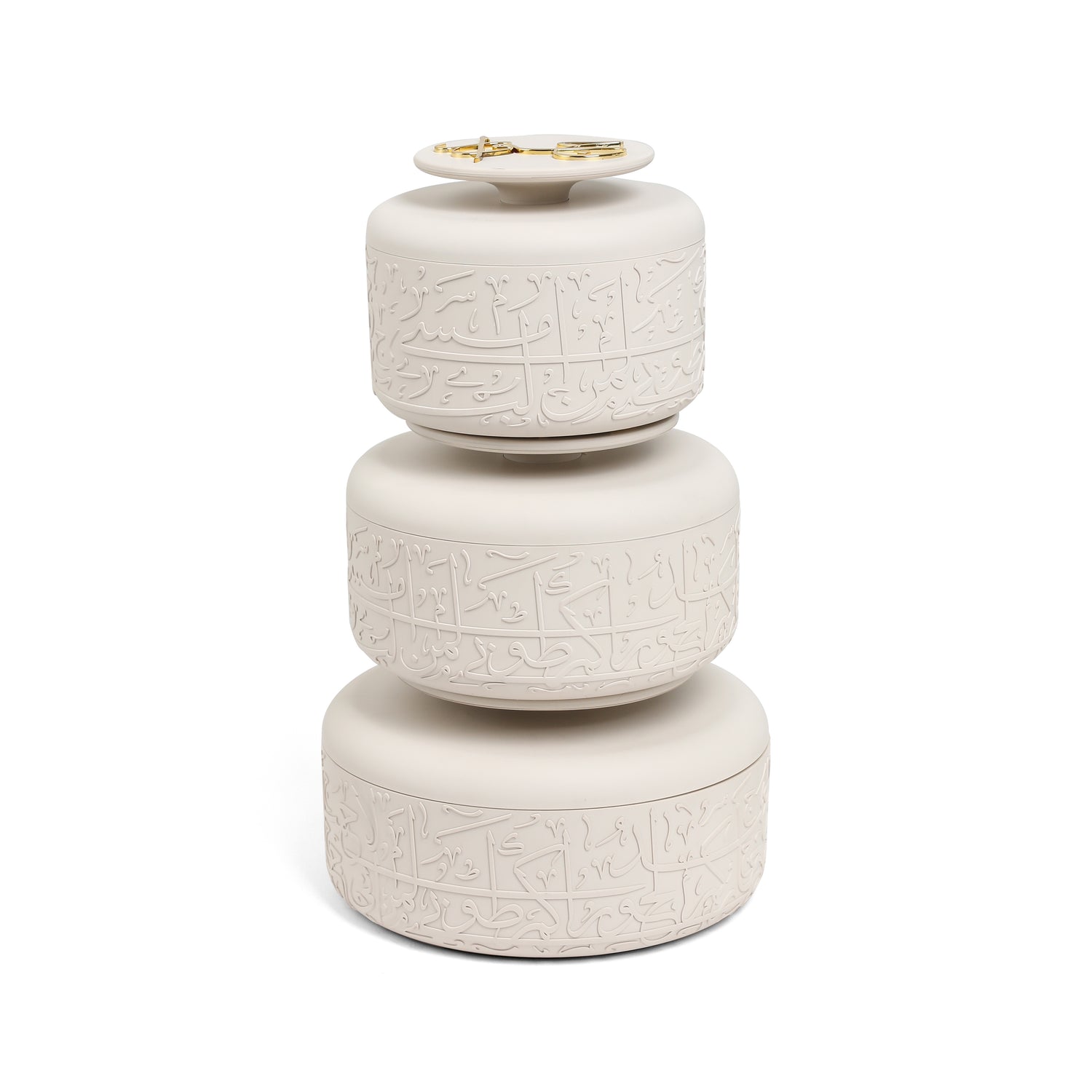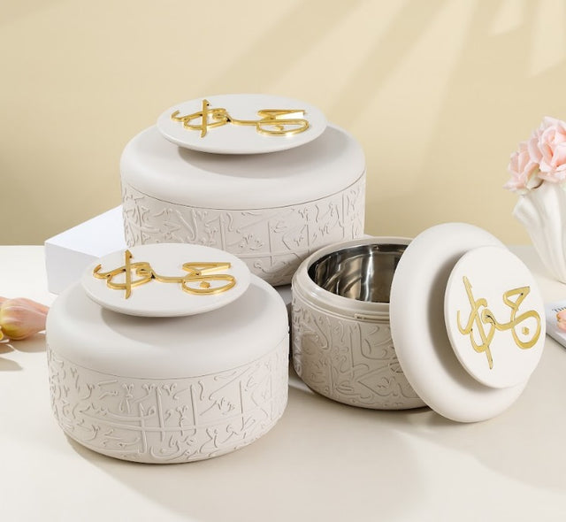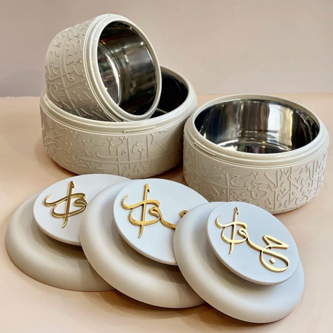 Jiwar - Food Thermos/Warm Serv (Set of 3)- Beige & Gold