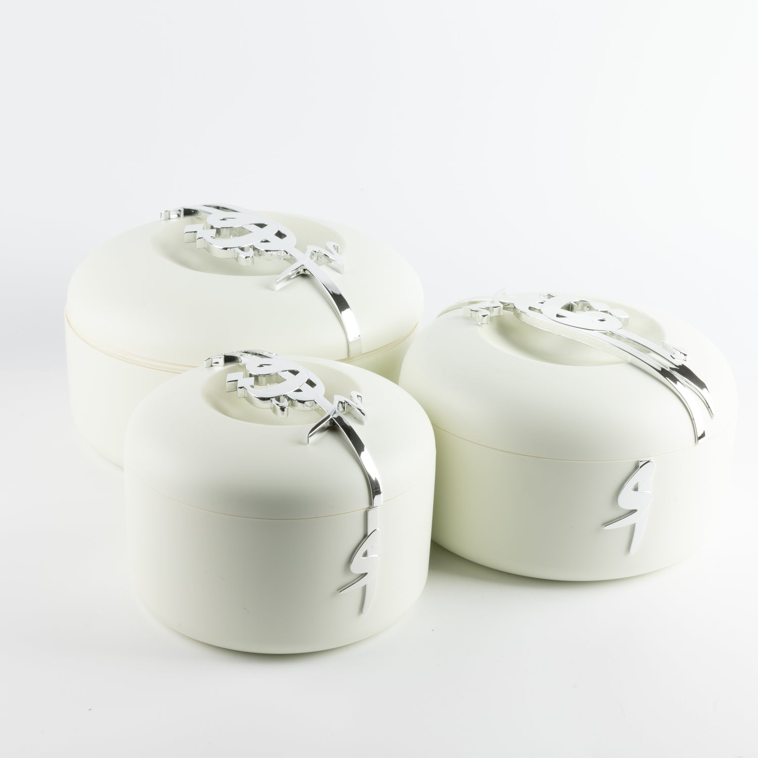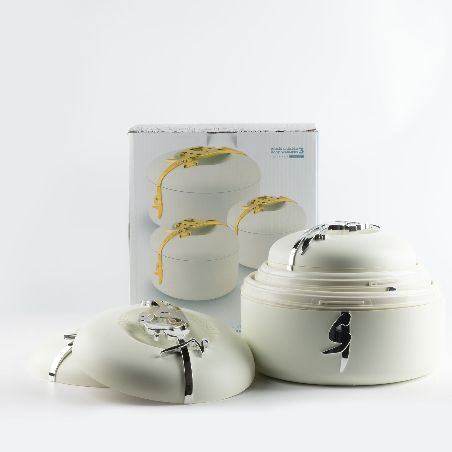 Liqa'a - Food Thermos/ Warm Serv (Set of 3) - Pearl White & Silver