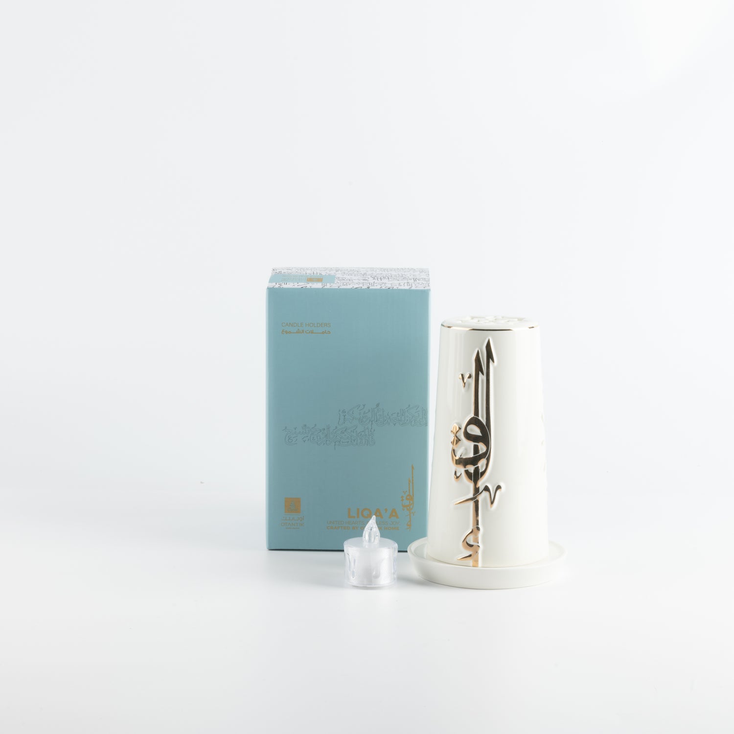 Liqa'a - Small Lantern Candle Holder - Pearl White & Gold