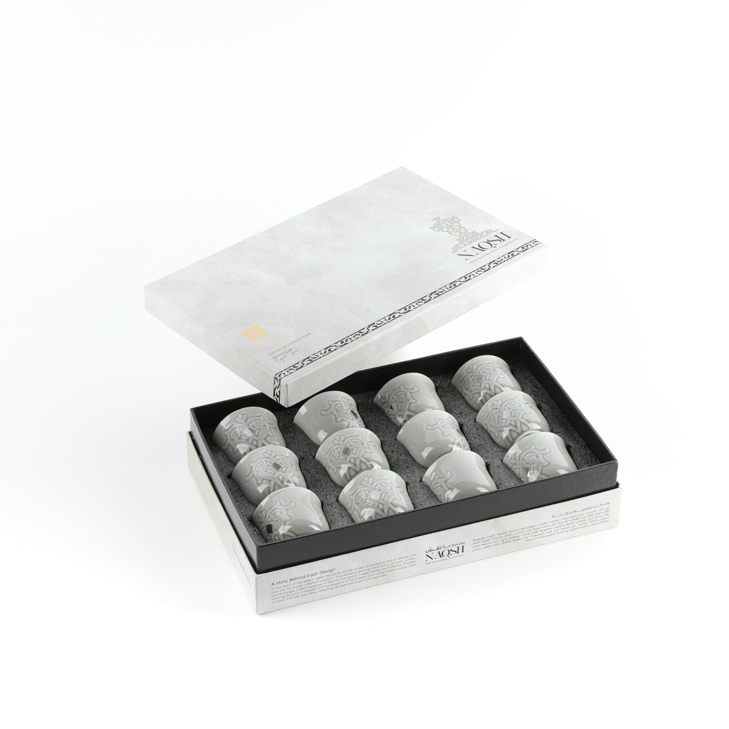 Naqsh - Arabic Coffee Cups (12-Pc)- Grey & Silver