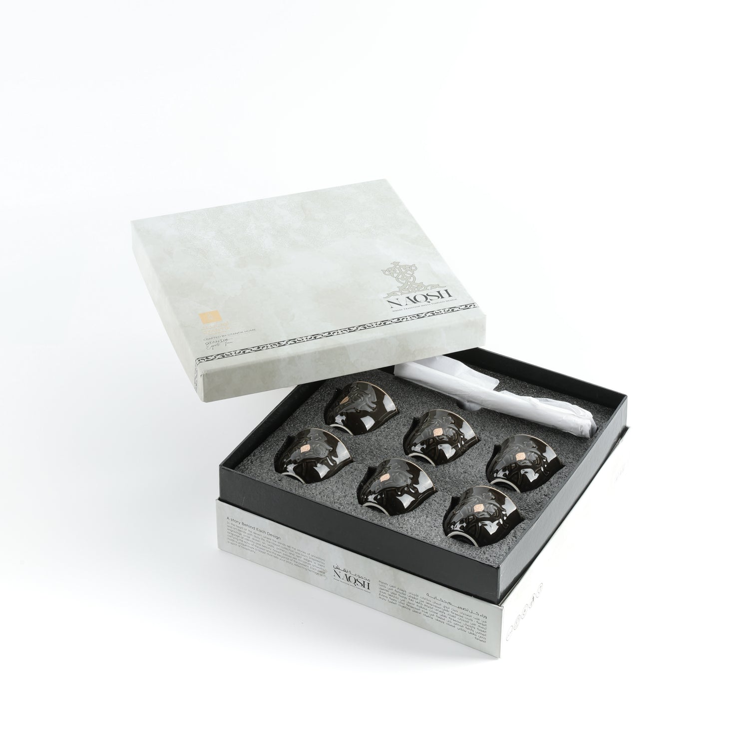 Where tradition meets refinement — the Naqsh Arabic Coffee Cups with Holder are designed for those who appreciate the elegance of every detail. This set beautifully unites timeless Arabic coffee culture with modern craftsmanship, creating an experience that feels both familiar and elevated.