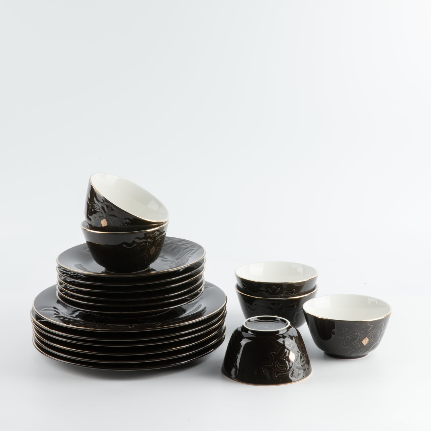 Naqsh - Dinner Set (18-Pc) - Black & Gold
