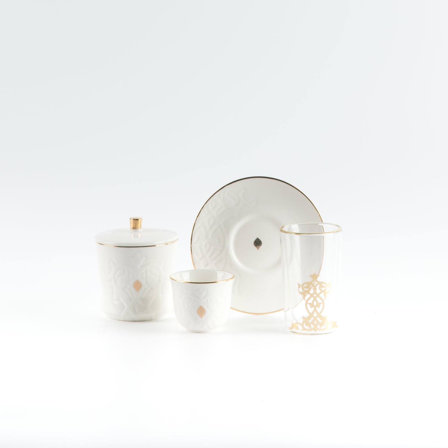 Naqsh - Tea Set (19-Pc) - White & Gold
