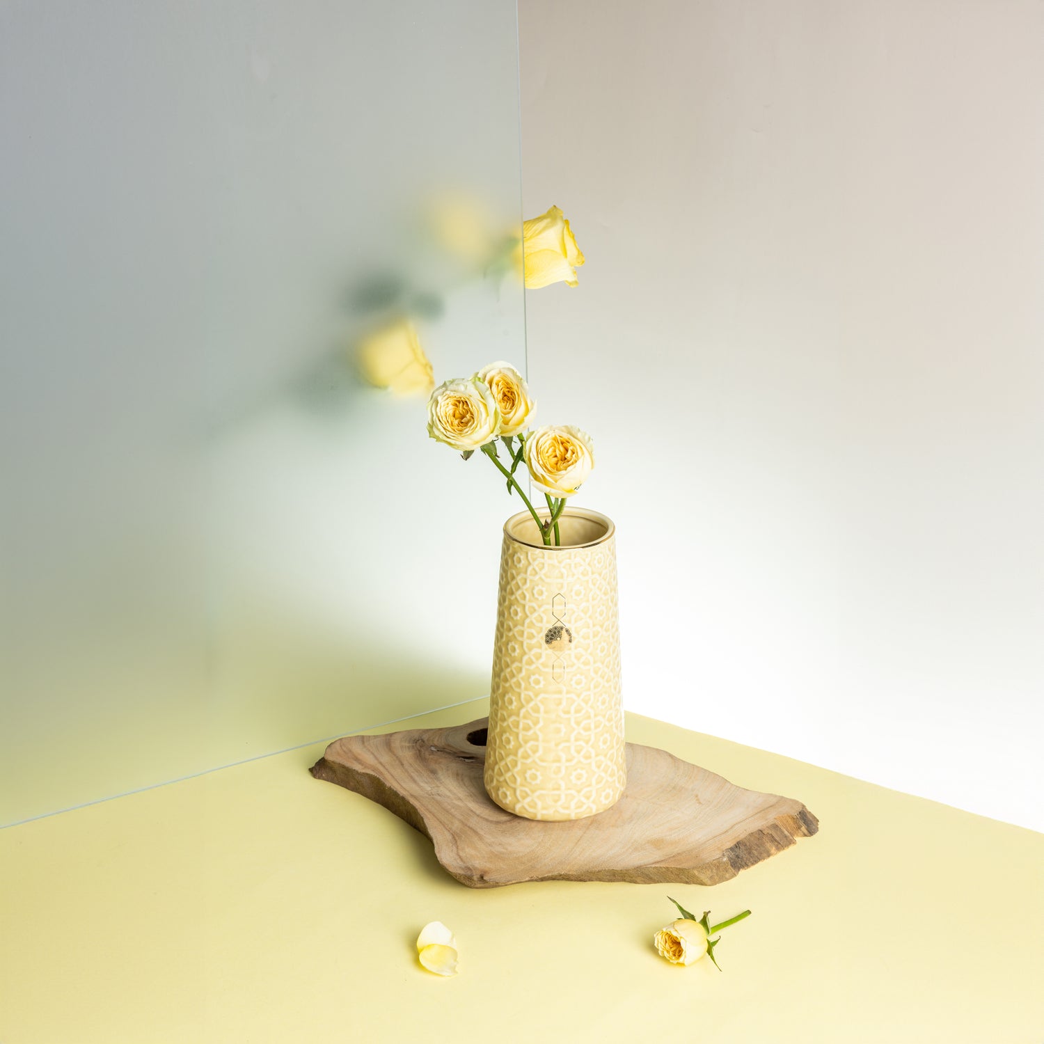 Rosette - Medium Decorative Vase - Ivory & Gold