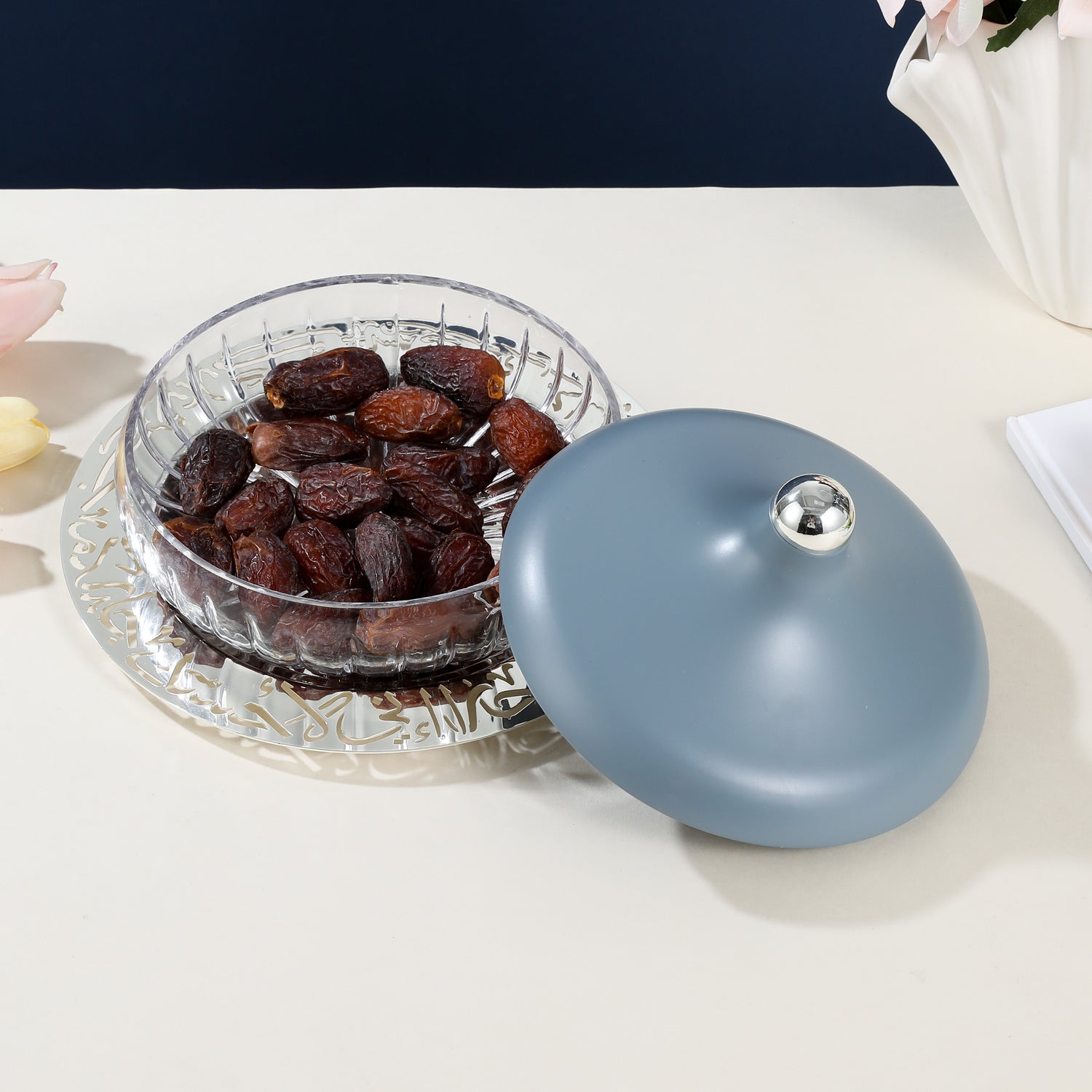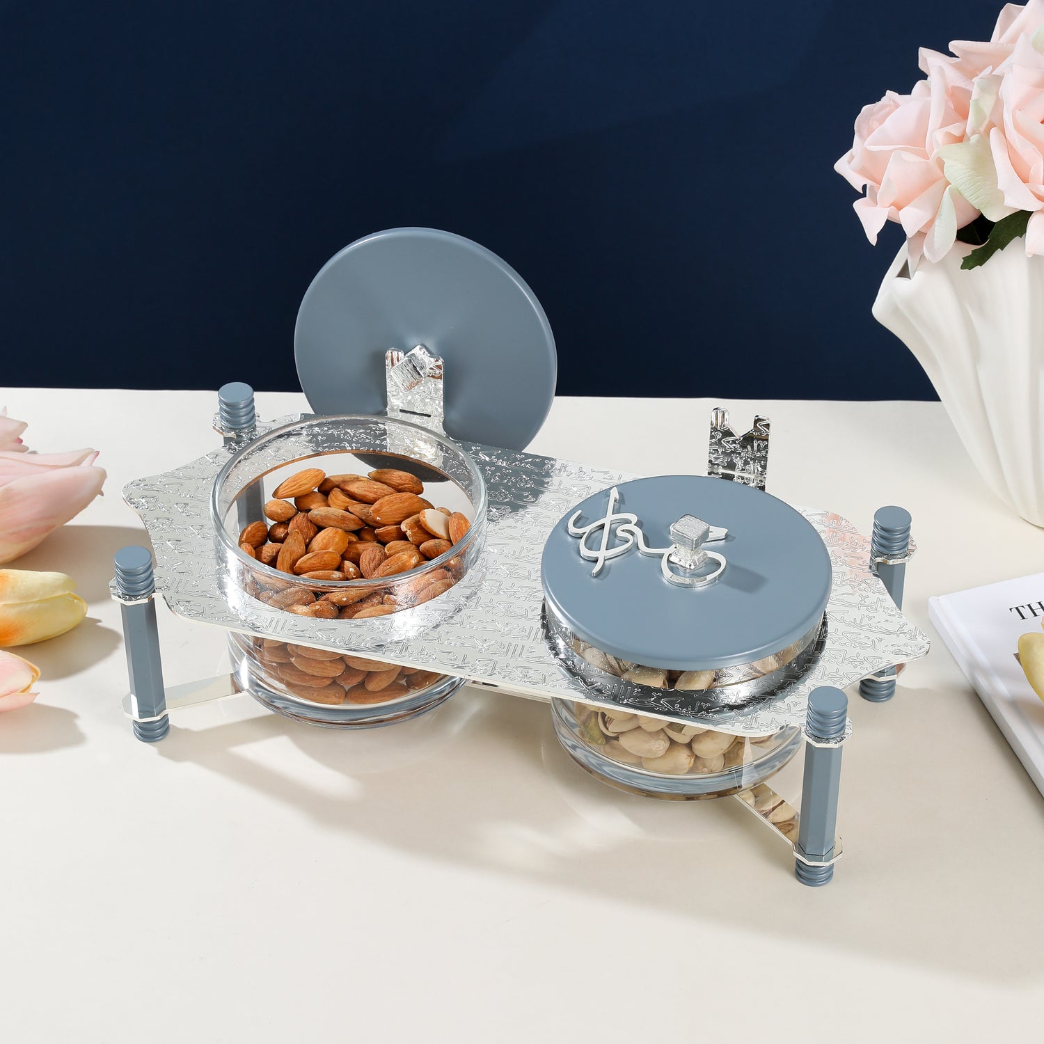 1X Jiwar - Dual Elegant Nut Serving Set with Engraved - Haze Blue & Silver