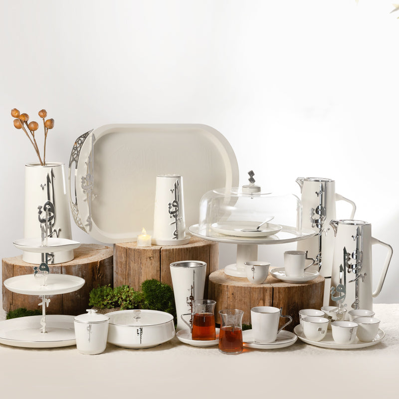 Jiwar - Large Engraved Date & Dessert Centerpiece - Beige & Silver