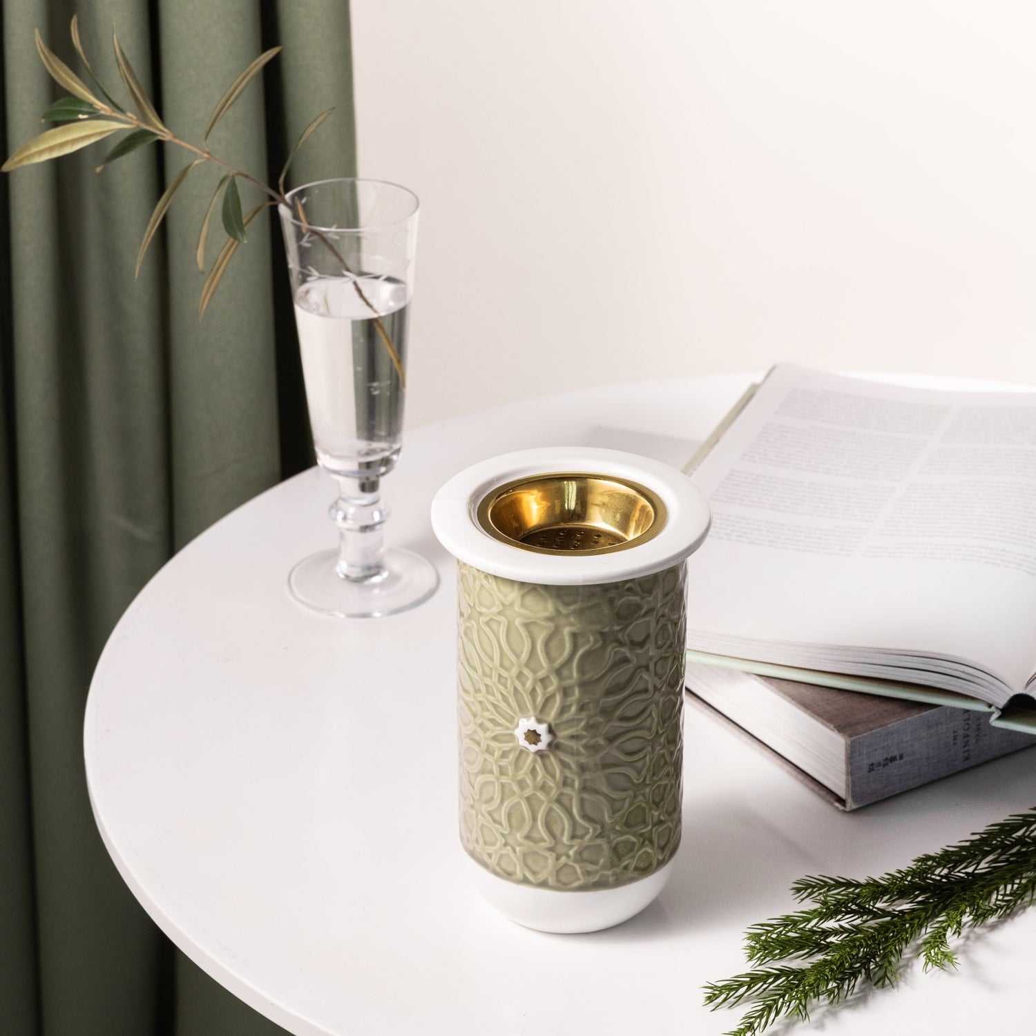 Asala - Incense Burner - Olive Green & Gold
