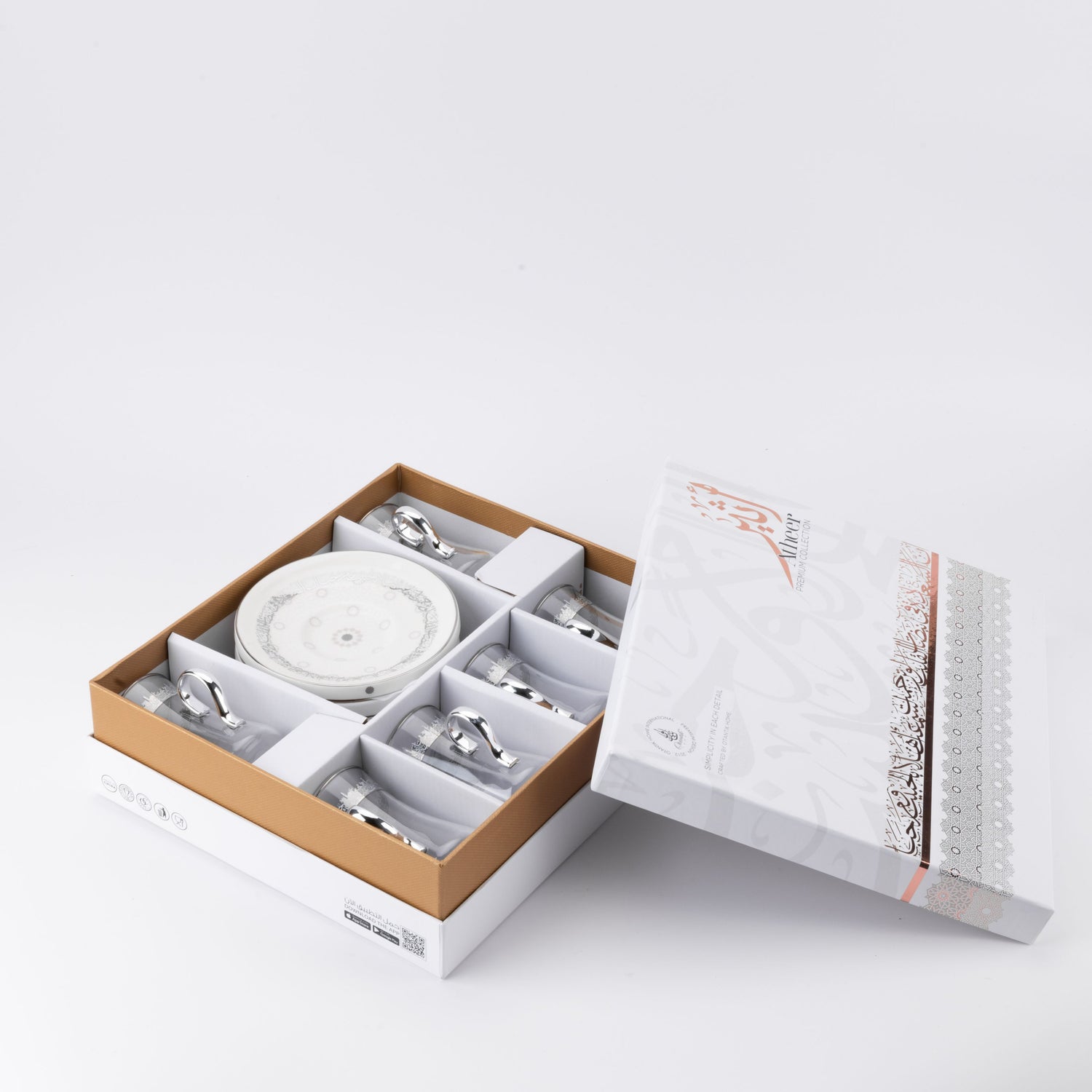 Experience the Atheer Tea Set, a stunning blend of timeless tradition and modern elegance. From the beautifully designed teapot to the delicate tea cups, each piece is a testament to sophistication and artistry. Whether you?re hosting an elegant tea party or savoring a quiet moment by yourself, this set adds a touch of refinement to every sip, making your tea time a truly unforgettable experience.