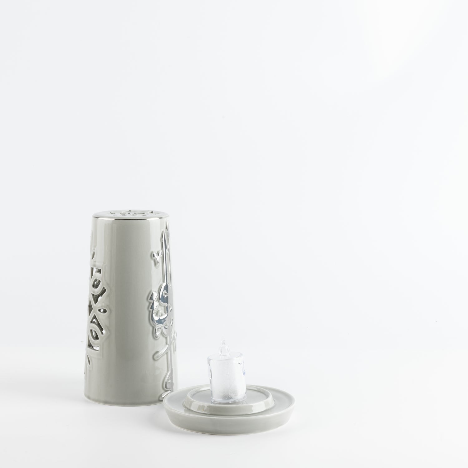 Liqa'a - Medium Lantern Candle Holder - Grey & Silver