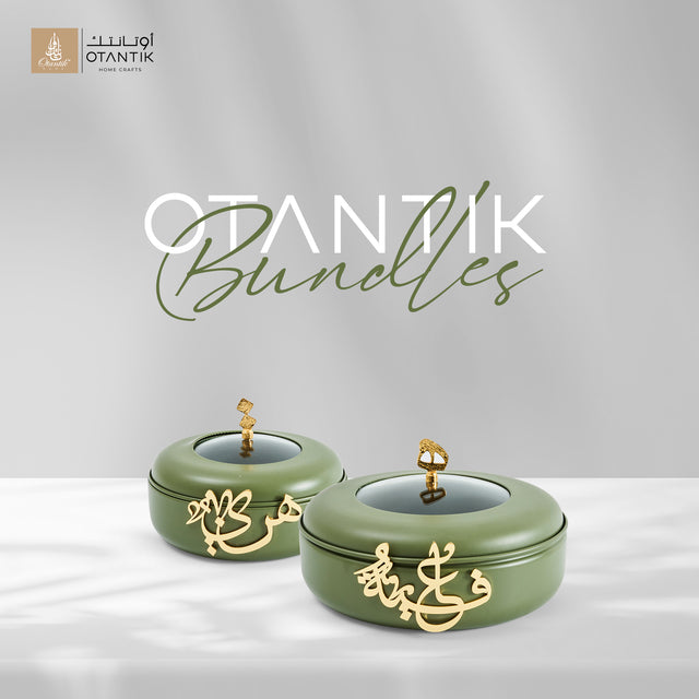 X1: https://otantik-usa.com/products/luxury-diwan-set-of-2-medium-buffet-warmer-olive-green-gold